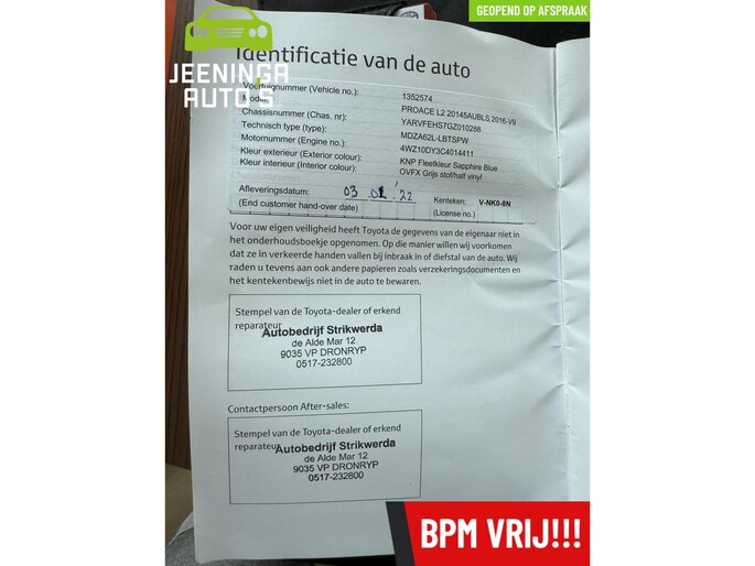 Je bod op Toyota Proace is geplaatst