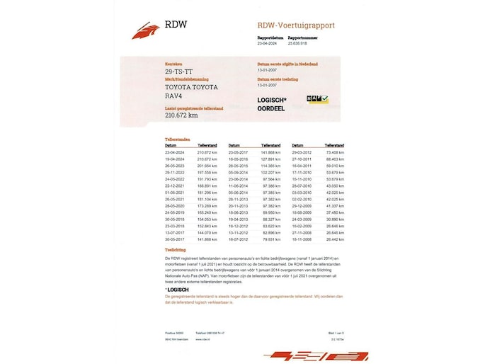 Kilometerstand gecontroleerd