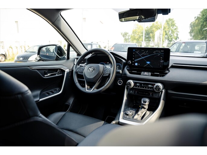 De TOYOTA RAV4 is gebouwd met hoogwaardige techniek en maakt het rijden van lange ritten, maar ook korte stukjes, tot een feestje. De hybride motor van deze TOYOTA RAV4 is de ideale combi van zowel brandstof- als elektromotor. Minder vaak naar de pomp, maar ook zuinig en schoon door de stad! Maximale grip op de weg, overal en altijd: dat biedt de vierwielaandrijving. Een blik van dichtbij onthult meteen twee mooie pluspunten: het lederen interieur en de elektrisch bedienbare achterklep. Kijk, en die stoelverwarming, dat is nou echt comfort. Helemaal als het buiten winters aanvoelt. U wordt in deze auto ook getrakteerd op 18 inch lichtmetalen velgen, led-koplampen, aanhangerstabilisatie, elektrische handrem, donker getint glas achter en LED-achterlichten.