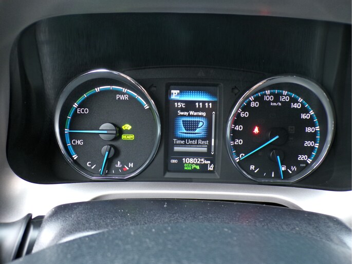 Pragmatisch en veilig als deze auto is, beschikt hij over diverse veiligheidssystemen. In het instrumentarium ziet u tijdens de rit ook de belangrijkste verkeersborden aangegeven, die de auto automatisch voor u leest. Het Lane-keeping systeem zorgt voor een automatisch constante positie binnen de rijstrook. Afdwalen is uitgesloten. Een kortere remweg verkleint de kans op een aanrijding. Brake assist helpt actief mee tijdens een noodstop. In deze Toyota vinden we verder een hill hold functie en bandenspanningcontrolesysteem.