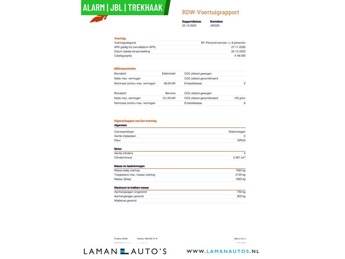 Deze advertentie en de inhoud ervan is met de grootst mogelijke zorg samengesteld. Het is echter mogelijk dat in de gehanteerde advertentietekst bepaalde opties en/of accessoires zijn vermeld welke niet op deze specifieke auto aanwezig zijn. Vraag voor aankoop naar de aanwezige opties en accessoires op de auto of bestelbus van uw keuze. Aan de getoonde informatie kunnen geen rechten worden ontleend en Laman Auto's kan nooit aansprakelijk worden gesteld voor de verstrekte informatie. Voor vragen en/of meer informatie over de exacte uitvoering en beschikbaarheid van de auto bel 06-52509973.