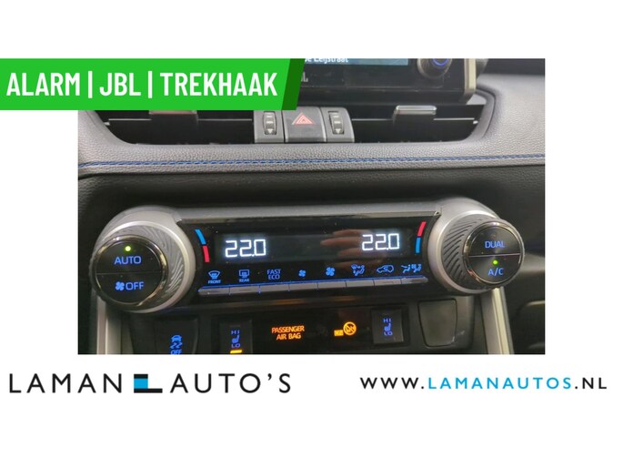 Deze RAV4 hybrid is voorzien van de sterke en zuinige 218pk hybride motor en ook nog eens uitgerust met luxe opties zoals een heerlijke automaat, Defa DVS 90 alarm klasse 3, JBL Premium Sound, Apple CarPlay, Android Auto, halflederen bekleding, stoelverwarming, Bi-Tone metallic lak, LED verlichting, navigatie, climate control, 18" lichtmetalen velgen, adaptive cruise control, achteruitrijcamera, elektrisch bedienbare achterklep, parkeersensoren voor en achter etc.