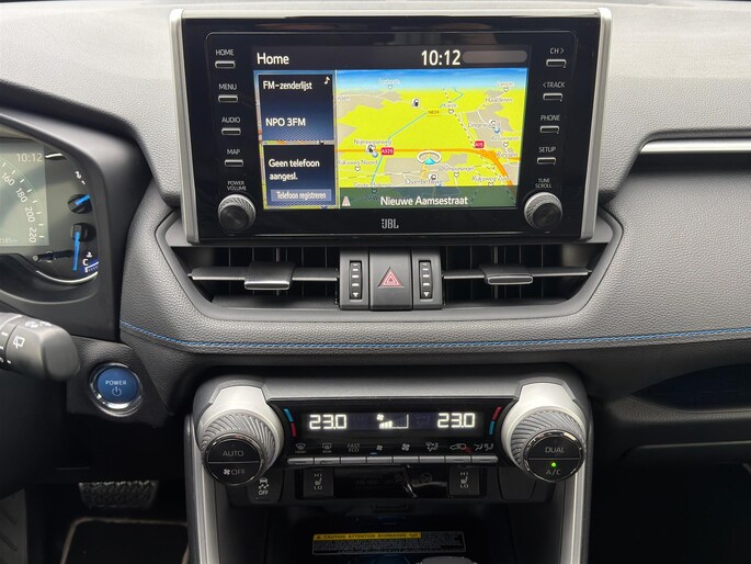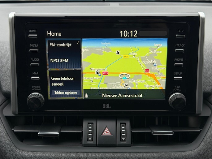 Deze luxe Toyota RAV4 Automaat met de 2.5 Hybride 218pk motor is o.a. voorzien van een volautomatische airconditioning, FULL MAP NAVIGATIE, bluetooth connectiviteit (draadloos laden, afhankelijk van toestel), Apple Carplay/Android Auto, DAB+ JBL radio met 9 speakers, , 18" LM-velgen met ALL SEASON banden, cruise control en speelimiter, rijstrooksensor, achteruitrij-camera, parkeersensoren voor en achter, elektrische achterklep, LEDEREN BEKLEDING met voorstoelverwarming, bestuurdersstoel in hoogte verstelbaar, bestuurdersstoel elektrisch te bedienen, lederen stuurwiel in hoogte en diepte verstelbaar, middenarmsteun voor en achter, deelbare achterbank met ISOFIX bevestigingspunten, regen- en lichtsensor, automatisch dimmende binnenspiegel, LED dagrijverlichting, LED koplampen, LED achterlichten, mistlampen, Follow me home verlichting, elektrische ramen voor en achter, buitenspiegels elektrisch verstelbaar/verwarmbaar, inklapbaar, key less entry en key less start, achterklepspoiler, privacy glass, dakrailing, chroom delen exterieur, wielkastbeschermers, skidplate voor en achter, 2x uitlaatpijpen met chromen eindstukken, boordcomputer en een bandenspanningscontrole systeem.