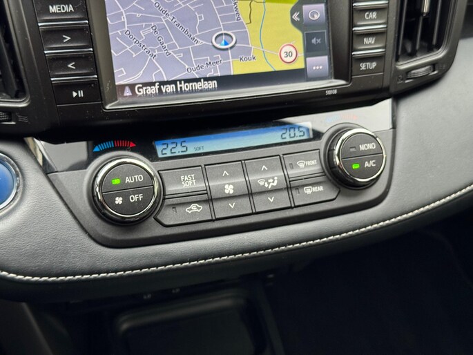 Strak inparkeren wordt een fluitje van een cent door de parkeerhulp met achteruitrijcamera. Met adaptive cruise control houdt deze auto automatisch afstand tot uw voorligger. Het origineel navigatiesysteem zorgt ervoor dat u snel en ontspannen op uw bestemming aankomt. Het comfort wordt verhoogd door de aanwezige automatische airconditioning. Ook lekker handig is de audiobediening op het stuur. De Toyota is standaard voorzien van: DAB+ tuner, regensensor, keyless entry, buitentemperatuurmeter, automatisch dimmende binnenspiegel en isofix-aansluiting.