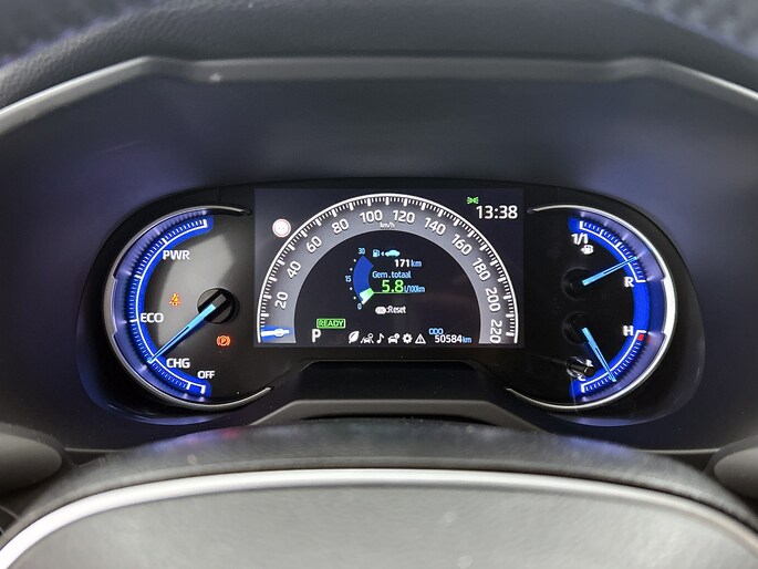 Het digitale dashboard rekent mee, denkt mee en rijdt mee. Alle info overzichtelijk in beeld, overal. Altijd achter zicht, nooit meer nekkramp! De achteruitrijcamera maakt het supermakkelijk. Met adaptive cruise control houdt de auto zelfstandig afstand tot jouw voorligger. Een veiligheidsverhogende optie waarmee je comfortabel onderweg bent. Appen met je auto? Geen probleem. Je kunt van overal contact opnemen, de functies controleren en activeren. Je bedient 'm met remote services. De luidsprekers van het high performance audiosysteem omringen jou met een uitgebalanceerd geluid. De uitrusting van deze Toyota is met dashboard met spraakbediening, full map navigatiesysteem, achteropkomend verkeer waarschuwing, electronic climate control, schakelpaddles aan het stuur en DAB ontvangst behoorlijk compleet.