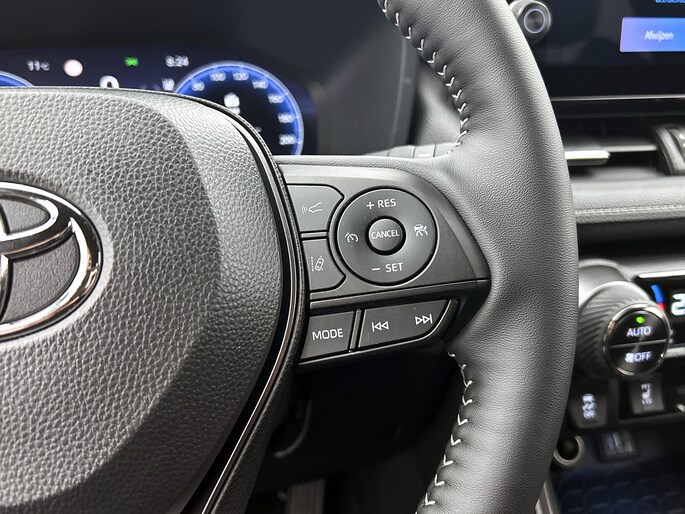 De functie van deze 360 graden camera is vooral nuttig in smalle straatjes waar het zicht beperkt is. Adaptive cruise control houdt de ingestelde snelheid vast en houdt afstand tot het voertuig voor je. Connected Services zorgen ervoor dat de belangrijkste functies en data van de auto altijd en overal te checken zijn. Gewoon via de app op de smartphone. In deze RAV4 vind jij niet alleen schakelaars op het stuur om het full map navigatiesysteem te bedienen en het audio-installatiesysteem met DAB-ontvangst, maar er is ook spraakbediening. Onbedoeld snijden na het inhalen gebeurt niet meer, dankzij de achteropkomend verkeer waarschuwing. Ook electronic climate control, schakelpaddles aan het stuur, regensensor, keyless entry, automatisch dimmende binnenspiegel en bagage afdekhoes horen tot de voorzieningen op deze auto.