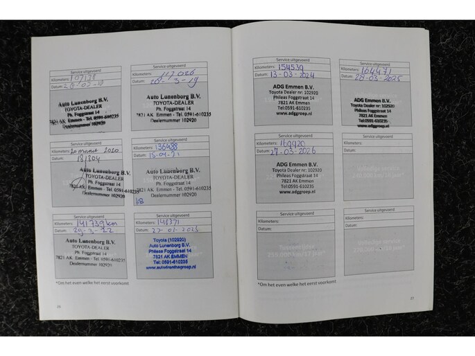 Uw ADG occasion wordt afgeleverd inclusief minimaal 12 maanden garantie, een onderhoudsbeurt volgens fabrieksschema, nieuwe apk keuring, 1 jaar pechhulp, reinigen in- en exterieur en een halve tank brandstof. Voor Toyota en Lexus geldt zelfs een garantie tot het 10e bouwjaar, mits deze jaarlijks bij de merkdealer wordt onderhouden.