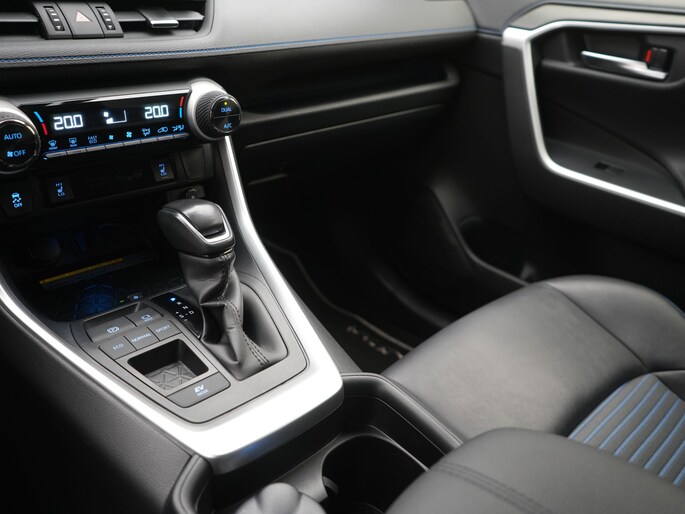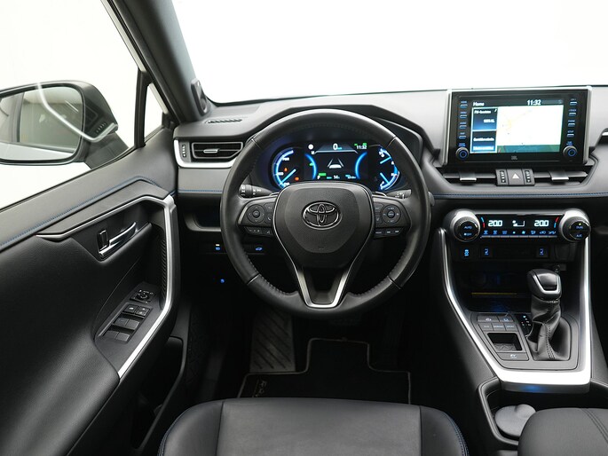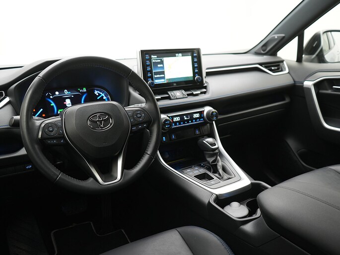 De eendrachtige samenwerking van de benzinemotor en de elektromotor geeft deze Toyota RAV4 zijn geweldige rijkwaliteiten. Een viercilinder motor en een automatische transmissie zorgen voor de uitstekende prestaties van deze auto. Van de diverse pluspunten is ook het lederen interieur het noemen waard. De stoelen zijn verwarmd en bieden ook in winterse kou een comfortabele zit. Met het grote glazen panoramadak geniet jij van maximale lichtinval. Bij de zeer complete uitrusting van deze auto behoren ook 17 inch lichtmetalen velgen, LED koplampen, trailer assistent, zwarte hemelbekleding, getint glas en in delen neerklapbare achterbank.