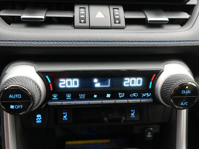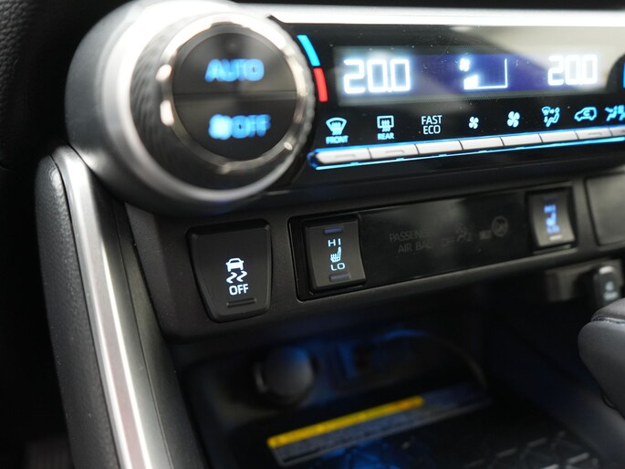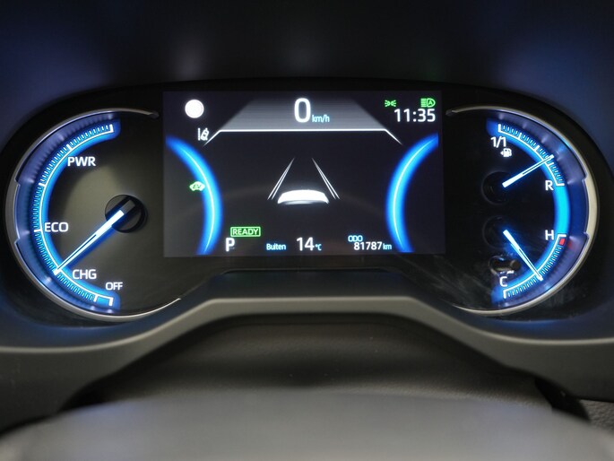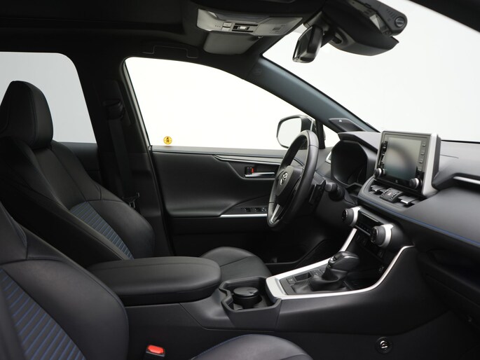 Zoals je mag verwachten van deze Toyota RAV4 is hij uitgerust met een reeks aan actieve veiligheidssystemen. Belangrijk voor jouw veiligheid en die van jouw passagiers is de verkeersbord-detectie in deze auto. Het Lane-keeping systeem garandeert dat je je niet onverhoeds buiten de lijnen van de rijstrook begeeft. In een noodsituatie waarschuwt forward collision warning bij een dreigende aanrijding met een voorligger. De auto is ook uitgerust met hill hold functie, brake assist, vermoeidheidsherkenning en bandenspanningcontrolesysteem.