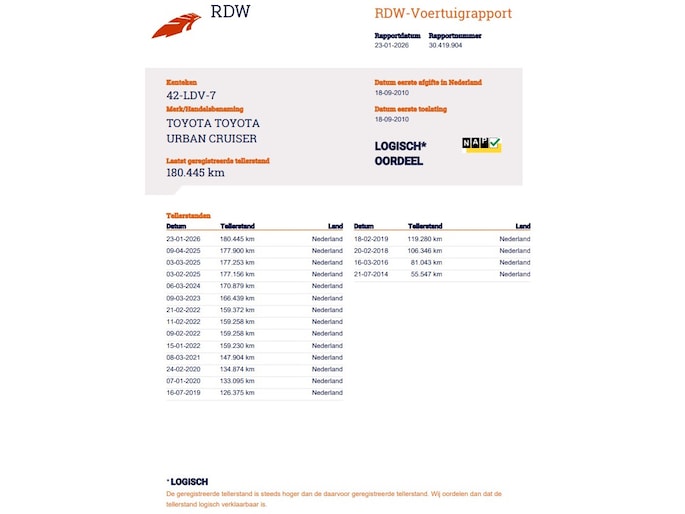 Kilometerstand gecontroleerd