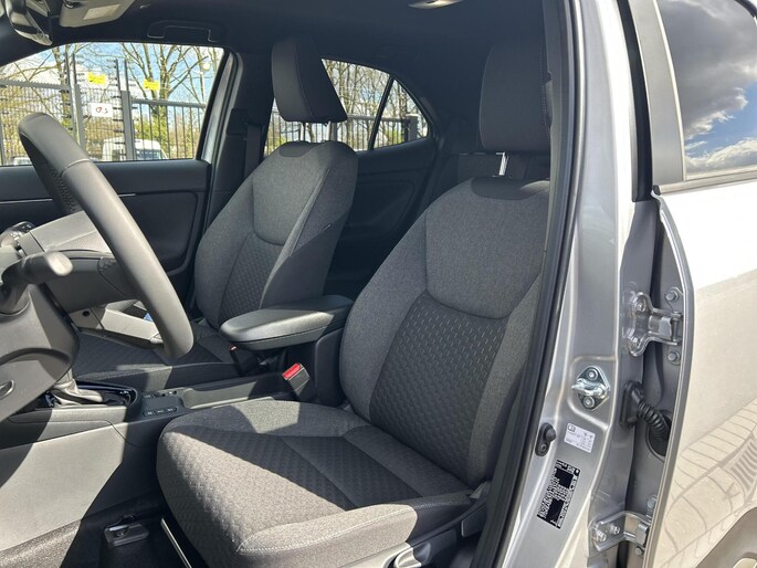 Soepel rijgedrag, een krachtige acceleratie en een laag brandstofverbruik, de hybride Toyota Yaris Cross is een innovatieve auto. U kunt deze nieuwe auto nu direct verkrijgen, want hij is op voorraad. Rijden op brandstof én elektriciteit? Dat kan, met de hybride motor van deze Toyota Yaris Cross. De elektromotor ondersteunt of neemt het deels over van de brandstofmotor als dat uitkomt. Scheelt lekker in de kosten! Kou en regen maken geen indruk. Binnen zit u comfortabel dankzij de stoelverwarming. Pak aan, 't is winter! Zo'n verwarmd stuurwiel is dan bijzonder prettig! Bij de uitrusting van deze auto horen onder meer 17 inch lichtmetalen velgen, LED koplampen, geluidsisolerende ramen, trailer assistent, aluminium dakrailing en dakspoiler.