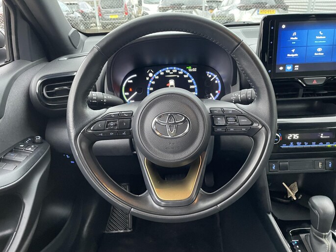 Met het digitale dashboard kunt u de cockpit-interface naar uw voorkeur instellen. De achteruitrijcamera vergemakkelijkt achteruit inparkeren. U ziet duidelijk wat er achter de auto gebeurt. Adaptive cruise control houdt de ingestelde snelheid vast en houdt automatisch afstand tot uw voorligger. Oliepeil, bandenspanning, sloten en andere functies zijn via een speciale app overal te checken dankzij Connected Services. Het full map navigatiesysteem brengt u soepel en vlot naar uw bestemming. Met automatische airconditioning, DAB ontvangst, regensensor, keyless entry, buitentemperatuurmeter en automatisch dimmende binnenspiegel is deze Toyota helemaal compleet.