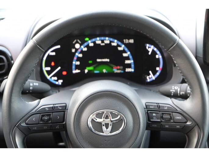 Het multifunctionele stuur van de Toyota Yaris Cross 1.5 Hybrid Executive zorgt ervoor dat je alle belangrijke functies binnen handbereik hebt. Of het nu gaat om het bedienen van het audiosysteem, de cruise control of de telefoon, met dit stuur ben je altijd in controle. Daarnaast is het interieur voorzien van voorverwarming en -koeling, waardoor je altijd in een aangename temperatuur de weg op kunt.