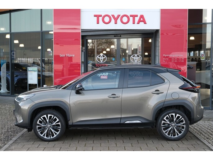 TOYOTA YARIS CROSS 1.5 Hybrid Executive Automaat | Intelligente parkeersensoren voor en achter | JBL Premium Audio met 8 speakers | Draadloos laden telefoon | Head-up display | JBL Premium Audio met 8 speakers | Blind Spot Monitor; dodehoekdetectie | Intelligente parkeersensoren voor en achter | Rear Cross Traffic Alert; kruisend verkeerdetectie achter met remfunctie | 1x 12V-aansluiting bagageruimte | Achterbank 40/20/40 neerklapbaar | Afwerking bovenkant dashboard en deurpanelen taupe soft-touch | Afwerking middenconsole deur- en stuurinleg warm zilver | Airconditioning, automatisch 2-zone | In twee delen en in hoogte verstelbare laadvloer | LED interieurverlichting | Lendensteun bestuurdersstoel | Lichte hemelbekleding | Nano-e technologie interieurluchtzuivering | Sierlijsten interieur chroom | Sportstoelen | Stoelbekleding, half synthetisch leder zwart met taupe stof en wit stiksel | Stoelverwarming voor | 18” lichtmetalen velgen machined design ‘Executive’ | Buitenspiegels elektrisch verstelbaar, verwarmbaar en automatisch inklapbaar | Grille voor, zwart pianolak met chromen accenten | Intelligente parkeersensoren voor en achter | Achterbank 40/20/40 neerklapbaar | Afwerking deur- en stuurinleg warm nickel | Afwerking middenconsole zwart pianolak | Sierlijsten interieur zwart pianolak | Stoelbekleding, luxe stof in khaki design ‘Explore’ | Stoelverwarming voor | Achterbumper design ‘Adventure’ | Buitenspiegels elektrisch verstelbaar, verwarmbaar en automatisch inklapbaar | Voorbumper design ‘Adventure’ | 6 speakers | 7” digitaal instrumentenpaneel | Draadloos Apple CarPlay® & Android Auto™* | Toyota Smart Connect® multimediasysteem met 9” touchscreen | Toyota Smart Connect® Services (4 jaar inbegrepen**) - Realtime navigatie - Realtime verkeersmeldingen - Op afstand bedienbare functies - Auto vergrendelen/ontgrendelen - Auto verwarmen/verkoelen (alleen op Hybrid) - Gevarenlicht inschakelen/uitschakelen | Automatisch dimmende binnenspiegel | Donkere hemelbekleding | Smart Entry met startknop | 17” lichtmetalen velgen machined design ‘Dynamic’ | Follow-me-home verlichting | LED knipperverlichting achter sequentieel | LED knipperverlichting voor | LED koplampen | LED mistlampen voor | Privacy Glass | Achteruitrijcamera | Apple CarPlay® & Android Auto™* | DAB+ tuner | Toyota Touch® 2 multimediasysteem met 8” touchscreen | USB-aansluiting voor | Regensensor | Afwerking middenconsole deur- en stuurinleg zilver | Hoogteverstelling passagiersstoel | In hoogte verstelbare laadvloer | Lederen stuurwiel | Lederen versnellingspook | Ramen, elektrisch bedienbaar voor en achter | Sierlijsten interieur zilver | Stoelbekleding, luxe stof grijs | Buitenspiegels, elektrisch verstelbaar en verwarmbaar | Haaienvinantenne | Halogeen koplampen | LED achterlichten | LED dagrijverlichting | Roof rails | 1x 12V-aansluiting voor | Achterbank 60:40 neerklapbaar | Afwerking bovenkant dashboard en deurpanelen zwart soft-touch | Afwerking onderkant dashboard zwart | Airconditioning, handbediend (op Hybrid: automatisch) | Centrale vergrendeling met afstandsbediening | Deurbekleding ‘Stof’ voor | EV en ECO Mode schakelaar (alleen op Hybrid) | Hoogteverstelling bestuurdersstoel | Lichte hemelbekleding | Middenarmsteun voor | Ramen, elektrisch bedienbaar voor | Richtingaanwijzers in buitenspiegels | Stoelbekleding, stof zwart | Urethaan stuurwiel met bedieningsknoppen | 8 airbags waaronder center airbag voorste passagiers | ABS met brake assist | AVAS (Acoustic Vehicle Approach System) 0-25 km/h, niet uitschakelbaar (alleen op Hybrid) | Hill-start Assist Control (HAC) | ISOFIX kinderstoelbevestiging, achter (2x) | Schemersensor | Toyota Safety Sense 2: - Automatic High Beam; automatische schakeling groot- en dimlicht - Full Range Adaptive Cruise Control (Hybrid vanaf 0 km/h., benzine vanaf 30 km/h) - Lane Departure Alert en Lane Trace Assist - Pre-Collision System met fietsers (dag) en voetgangers (dag+nacht) detectie - Road Sign Assist; verkeersbordherkenning | Trailer Sway Control (alleen op Hybrid) | VSC, TRC en HAC | 2 speakers | 4,2” digitaal instrumentenpaneel ‘Binocular’ | DCM unit met eCall functie | Radiovoorbereiding | Tot 10 jaar garantie |