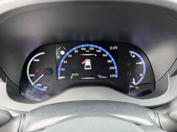 Met het digitale dashboard in deze auto kunt u de interface van uw cockpit personaliseren. Nooit meer parkeerschade dankzij de achteruitrijcamera. Adaptive cruise control is veilig en comfortabel. De snelheidsregelaar houdt automatisch afstand tot het voertuig dat voor u rijdt. In één oogopslag weet u de complete systeemstatus van deze auto. Dankzij Connected Services. Zuinig, veilig en ontspannen op pad: dat kan dankzij het aanwezige full map navigatiesysteem. U bent in deze Toyota ook voorzien van automatische airconditioning, DAB ontvangst, regensensor, buitentemperatuurmeter, automatisch dimmende binnenspiegel en lederen stuur.