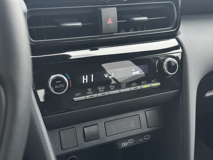 Met een krachtige hybride benzine motor die een vermogen levert van 93 PK, is de Toyota Yaris Cross 1.5 Hybrid 115 First een plezier om in te rijden. Dankzij de lage kilometerstand van slechts 7611 kilometer kunt u nog vele kilometers genieten van deze prachtige SUV. De carrosserie met 5 deuren zorgt voor eenvoudige toegang tot het ruime interieur, wat is voorzien van luxe stoffen bekleding die zowel comfortabel als stijlvol is.