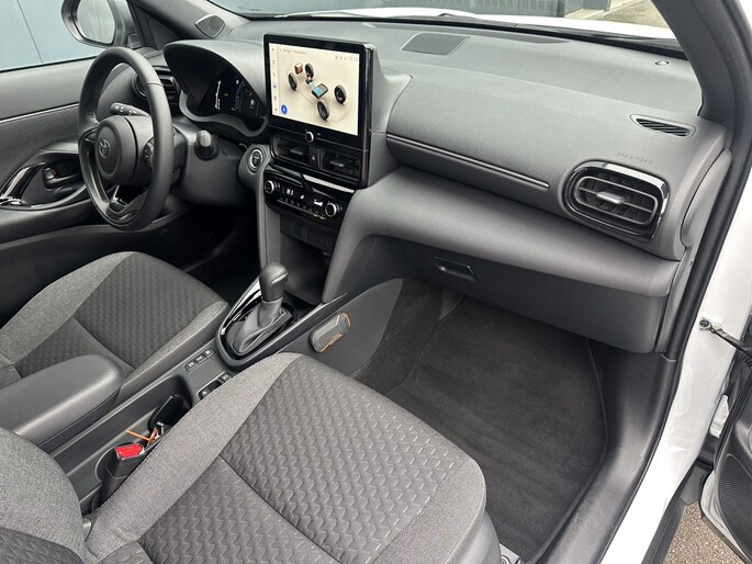 Deze Toyota Yaris Cross is uitgerust met lichtmetalen velgen van 17 inch die niet alleen de uitstraling van de auto versterken, maar ook zorgen voor een soepele en stabiele rit. Het multimedia scherm in het midden van het dashboard biedt een intuïtieve bediening van het entertainmentsysteem en andere functies van de auto. Veiligheid is een prioriteit in deze Yaris Cross, met onder andere een passagiersairbag en een alarm klasse 1 (startblokkering) om u gemoedsrust te geven tijdens het rijden.