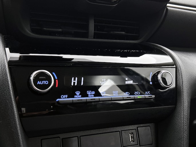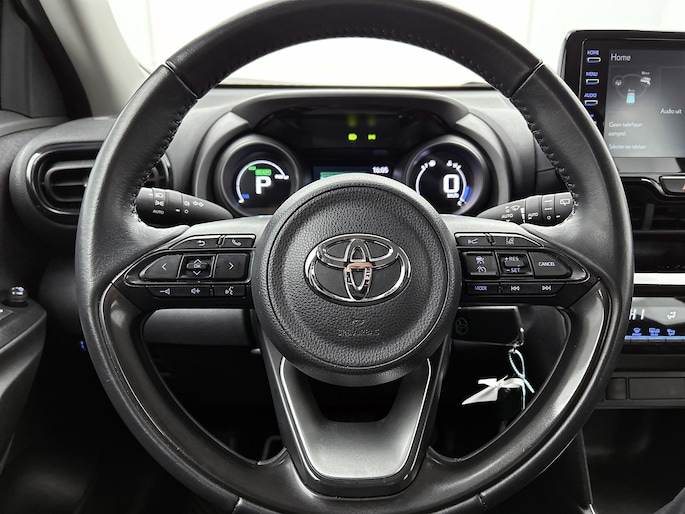 Een onopvallend paaltje of een overstekend kind achter de auto brengt risico's met zich mee. Gelukkig laat de achteruitrijcamera feilloos zien of alles veilig is. Adaptive cruise control houdt de ingestelde snelheid vast en houdt automatisch afstand tot jouw voorligger. Oliepeil, bandenspanning, sloten en andere functies zijn via een speciale app overal te checken dankzij Connected Services. In deze Yaris Cross vind jij schakelaars op het stuur om het audiosysteem met dab-ontvangst te bedienen. De automatische airconditioning zorgt voor een behaaglijk klimaat in de auto. De Toyota is standaard voorzien van: regensensor, buitentemperatuurmeter, lederen stuur, centrale deurvergrendeling met afstandsbediening en lederen versnellingspook.