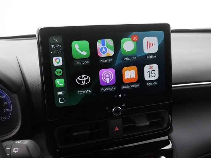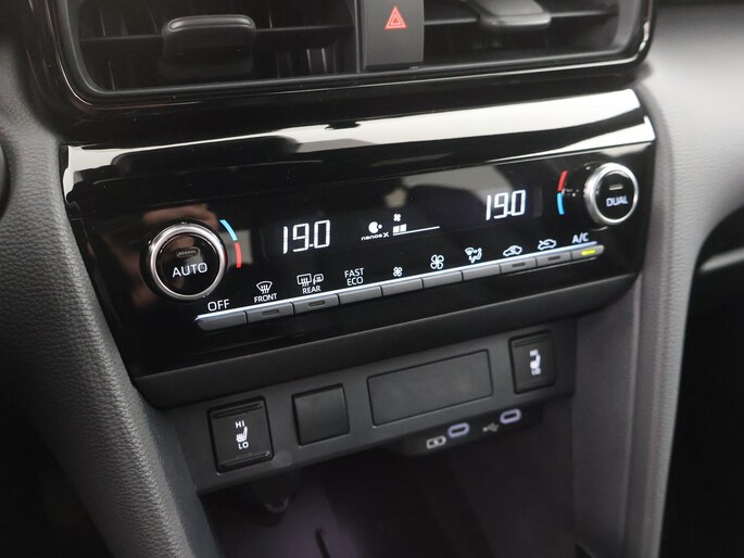 Niets achter deze auto blijft verborgen door de achteruitrijcamera. Een veilig gevoel! Met adaptive cruise control houdt de auto zelfstandig afstand tot uw voorligger. Een veiligheidsverhogende optie waarmee u comfortabel onderweg bent. Hoe is het met de banden, de accu en andere onderdelen? Connected Services maakt het inzichtelijk, 24/7 via de app. Het audio-installatiesysteem met DAB-radio biedt glasheldere geluidskwaliteit. U bedient dit veilig, via het stuurwiel of met spraakbediening. De auto is voorzien van een draadloze telefoonlader, zodat uw smartphone tijdens de rit 100% wordt. De Toyota is standaard voorzien van: electronic climate control, regensensor, keyless entry, buitentemperatuurmeter, automatisch dimmende binnenspiegel en lederen stuur.