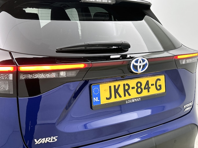 Een hele fijne occasion, deze Toyota Yaris Cross. Klasse in uitvoering, perfect in conditie en met een voorbeeldige kilometerstand. Je aandacht meer dan waard! Rijden op brandstof én elektriciteit? Dat kan, met de hybride motor van deze Toyota Yaris Cross. De elektromotor ondersteunt of neemt het deels over van de brandstofmotor als dat uitkomt. Scheelt lekker in de kosten! 's Winters komen de verwarmbare voorstoelen heerlijk van pas. Het glazen panoramadak zorgt voor een onovertroffen uitzicht. Bij de uitrusting van deze Toyota horen onder meer 18 inch lichtmetalen velgen, LED koplampen, halflederen bekleding, trailer assistent, dakspoiler en donker getint glas achter.