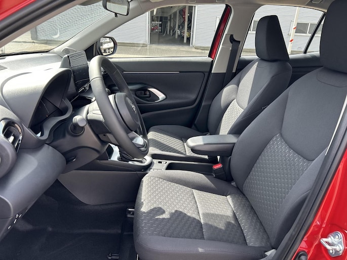 Soepel rijgedrag, een krachtige acceleratie en een laag brandstofverbruik, de hybride Toyota Yaris Cross is een innovatieve auto. Het is een nieuwe auto, hij is nu uit voorraad leverbaar. Rijden op brandstof én elektriciteit? Dat kan, met de hybride motor van deze Toyota Yaris Cross. De elektromotor ondersteunt of neemt het deels over van de brandstofmotor als dat uitkomt. Scheelt lekker in de kosten! Lekker hoor, die verwarmbare voorstoelen. Helemaal op koude dagen. Verder is de Toyota uitgerust met: 16 inch lichtmetalen velgen, LED-dagrijverlichting, geluidsisolerende ramen, trailer assistent, dakspoiler en in delen neerklapbare achterbank.