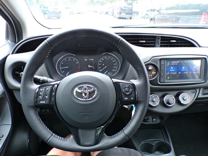 Ook achter de auto geen verrassingen bij het inparkeren. Daarvoor zorgt de achteruitrijcamera. Door de smartphone connectiviteit ontvangt het audio-installatiesysteem muziek van elk device. Het audio-installatiesysteem doet het op eigen kracht, alle software up-to-date. Van een paar vegen bij motregen tot maximale stand bij noodweer: de regensensor reageert zelfstandig en direct. Ja, ook airconditioning is in deze auto aanwezig. De Toyota is standaard voorzien van: lederen stuur, centrale deurvergrendeling met afstandsbediening en lederen versnellingspook.