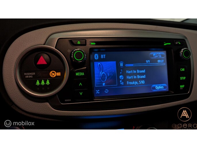 De Yaris is verder uitgerust met half lederen bekleding, een in hoogte verstelbare bestuurdersstoel mét middenarmsteun. Natuurlijk beschikt de auto over centrale deurvergrendeling en zelfs over keyless start. (Starten door middel van een startknop, met de sleutel in uw zak!) De autoradio beschikt naast Bluetooth ook over een CD-speler. De ramen zijn zowel voor als achter elektrisch bedienbaar, de spiegels zijn elektrisch verstelbaar, de lampen gaan automatisch aan zodra het donker wordt en weer uit zodra het niet meer nodig is. Kortom; een superdeluxe auto die zeer betrouwbaar is, voorzien is van alle moderne technieken en met een sportief uiterlijk.