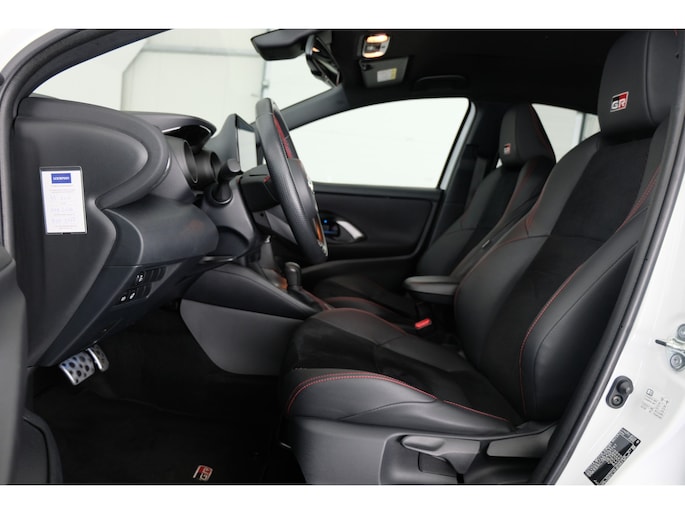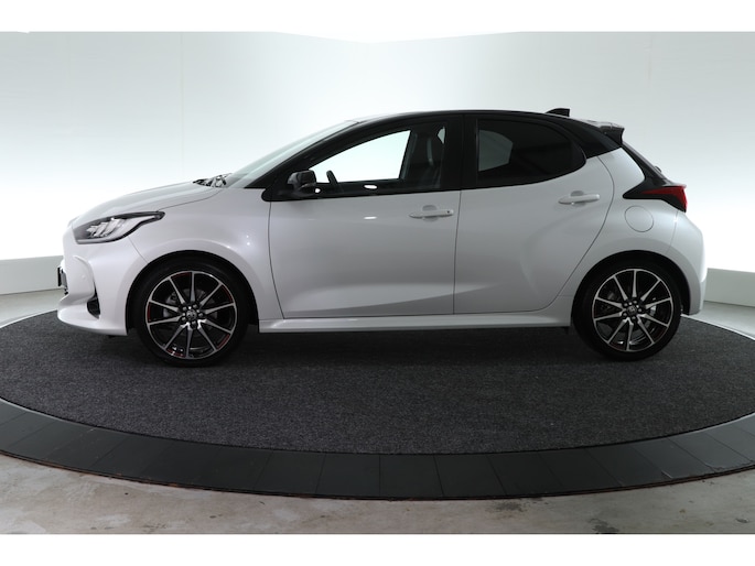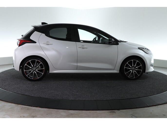 Betreft een Toyota Yaris 1.5 hybrid GR Sport uit 2023. De parelmoer witte lak in combinatie met een zwart dak en zwarte accenten zorgen voor de stijlvolle uitstraling.