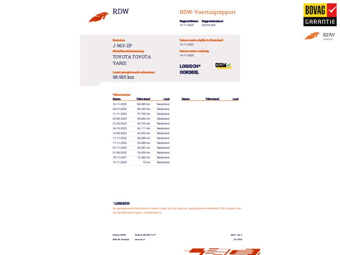 Kilometerstand gecontroleerd
