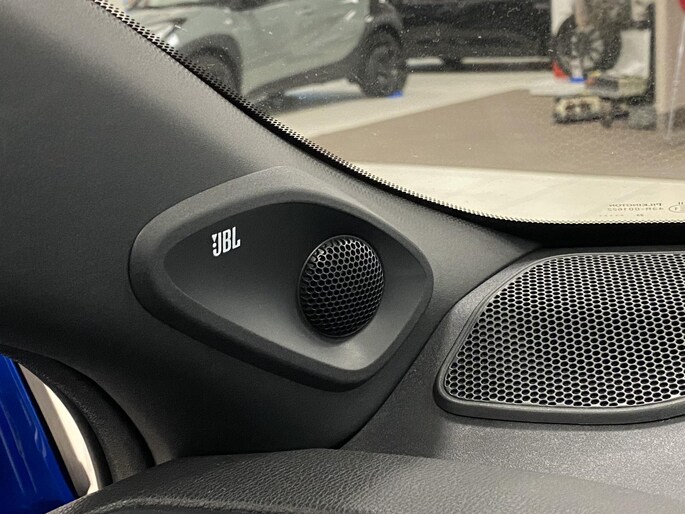 Interieurkleur: Zwart half synt.leder blauwe stiksel