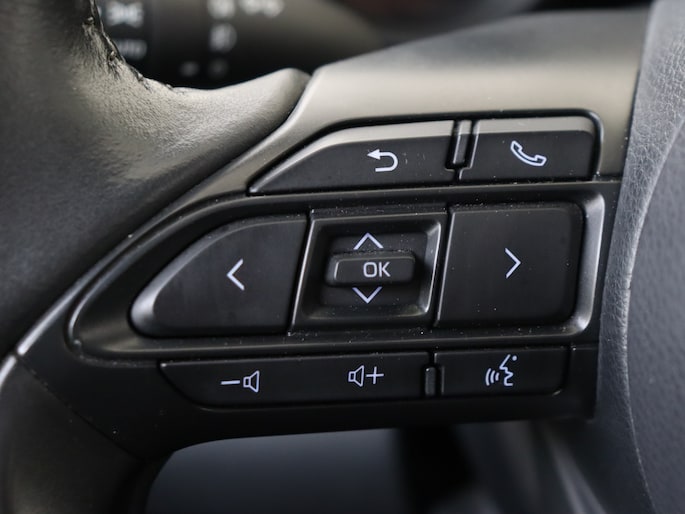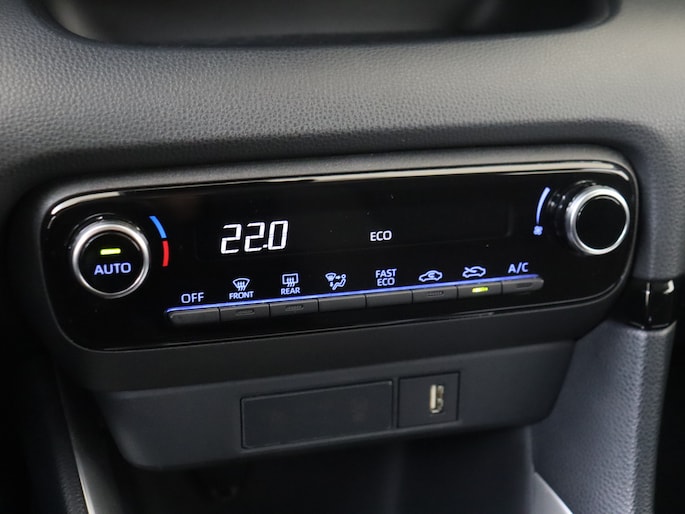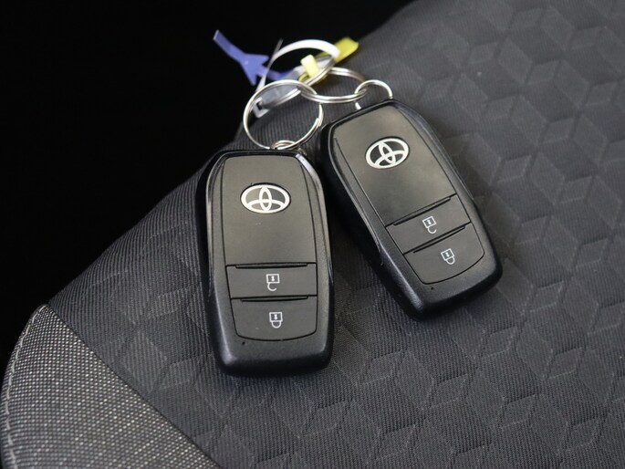 Hoeveel ruimte heeft u nog bij het inparkeren? De achteruitrijcamera brengt helder in beeld wat zich achter de auto bevindt en geeft een geluidssignaal. Met adaptive cruise control houdt de auto zelfstandig afstand tot jouw voorligger. Een veiligheidsverhogende optie waarmee je comfortabel onderweg bent. Dankzij Connected Services weet je precies waar je auto geparkeerd staat. Ook andere functies, zoals bandenspanning en brandstofniveau, zijn via de app altijd onder handbereik. Gemakkelijk en veilig is de bediening het audiosysteem en het navigatiesysteem met knoppen op het stuur. De audio-kwaliteit is geweldig, dankzij de DAB-ontvangst. Met de automatische airconditioning selecteer jij de gewenste temperatuur. Het systeem doet de rest. Ook is de Toyota uitgerust met: regensensor, keyless entry, lederen stuur en lederen versnellingspook.