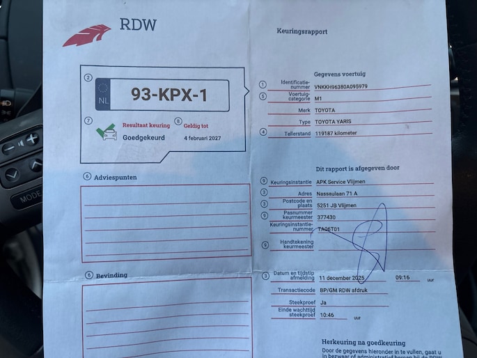 Kilometerstand gecontroleerd