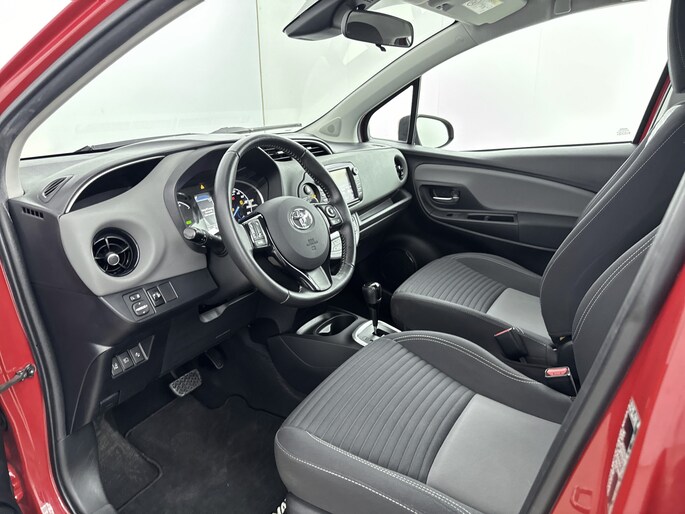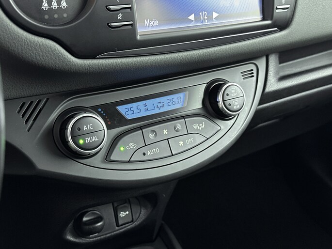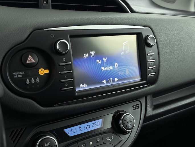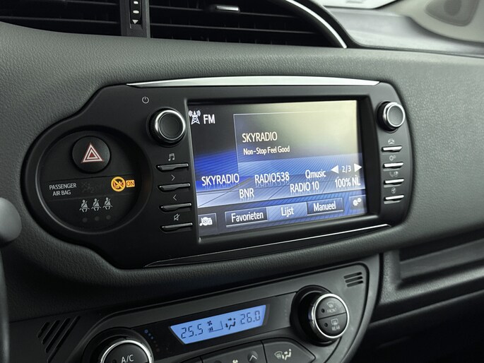 Zoals je mag verwachten van deze Toyota Yaris is hij uitgerust met een reeks aan actieve veiligheidssystemen. De camera van de verkeersborddetectie herkent verschillende soorten verkeersborden en toont deze op het dashboard. Het Lane-keeping systeem garandeert dat je je niet onverhoeds buiten de lijnen van de rijstrook begeeft. In een noodsituatie waarschuwt forward collision warning bij een dreigende aanrijding met een voorligger. De veiligheid van deze auto wordt verder verhoogd door hill hold functie, brake assist en bandenspanningcontrolesysteem.