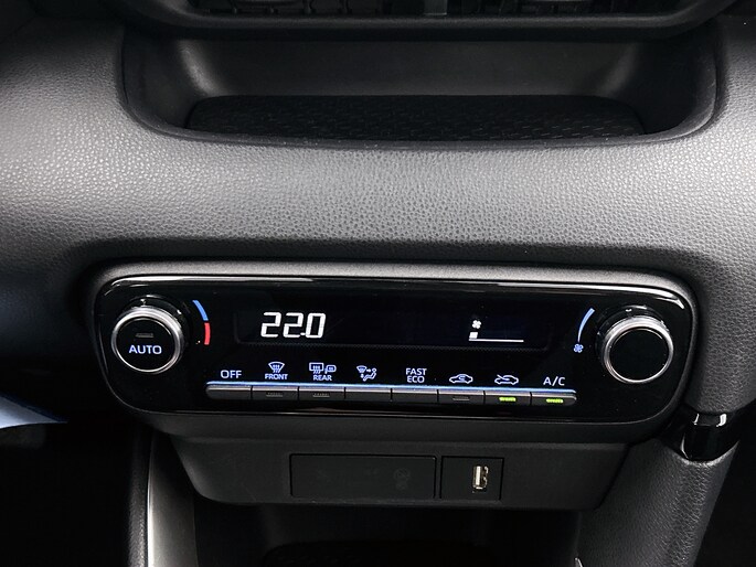 Zoals je mag verwachten van deze Toyota Yaris is hij uitgerust met een reeks aan actieve veiligheidssystemen. Bij de veiligheidssystemen van deze Toyota hoort ook de verkeersbord-detectie. Die leest tijdens het rijden als het ware met je mee en attendeert je op de significante verkeersborden langs en boven de weg. Met het Lane-keeping systeem kom je nooit per ongeluk buiten de rijstrook. Voor meer veiligheid detecteert deze auto het risico van een aanrijding tijdig via de forward collision warning. Verder is deze auto uitgerust met hill hold functie, autonoom remsysteem en bandenspanningcontrolesysteem.