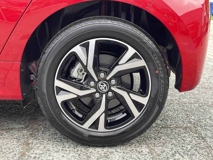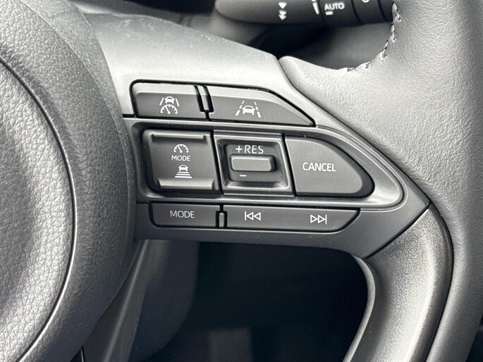 Duik in de digitale wereld van mobiliteit waar alles wat u nodig heeft voor een comfortabele en veilige rit, wordt geprojecteerd op het digitale dashboard. Altijd achter zicht, nooit meer nekkramp! De achteruitrijcamera maakt het supermakkelijk. Adaptive cruise control is een comfortabele en veilige optie. Het systeem reguleert de snelheid en houdt automatisch afstand tot uw voorligger. Deze Toyota Yaris is 'connected'. Belangrijke functies worden permanent gemeten en zijn uit te lezen via een speciale app, ook op afstand. Dankzij automatische airconditioning is het interieur behaaglijk warm of verfrissend koel. En dan is deze auto ook nog eens voorzien van draadloos opladen, DAB ontvangst, regensensor, keyless entry, buitentemperatuurmeter en automatisch dimmende binnenspiegel.