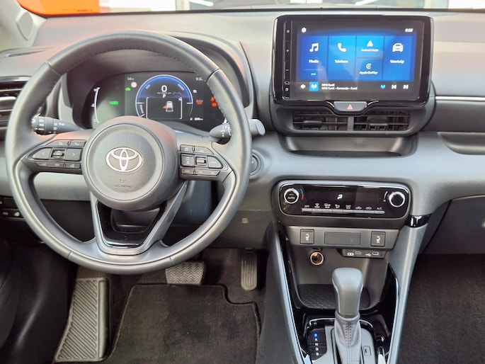 De digitale wereld van mobiliteit verwelkomt u; op het digitale dashboard wordt alles weergegeven om uw rit gemakkelijk en veilig te maken. Inparkeren? Met de achteruitrijcamera heeft u er geen omkijken meer naar! Als u de adaptive cruise control inschakelt, regelt de auto zelf de snelheid en de afstand tot de auto voor u. Met Connected Services wordt iedere rit nóg veiliger. Onderweg kunt u veilig genieten van het audio-installatiesysteem met dab-radio. Want in deze Toyota bedient u het vanaf het stuurwiel. Ook automatische airconditioning, regensensor, keyless entry, buitentemperatuurmeter, automatisch dimmende binnenspiegel en lederen stuur zijn aan boord.