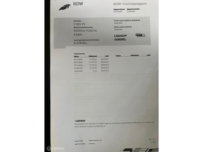 Kilometerstand gecontroleerd