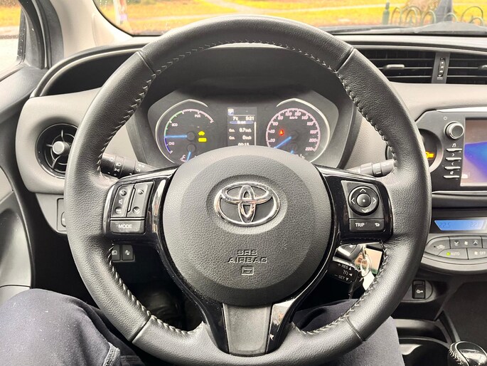 Zoals u mag verwachten van deze Toyota Yaris is hij uitgerust met een reeks aan actieve veiligheidssystemen. Dat de auto steeds meer taken van de bestuurder overneemt, merkt u bijvoorbeeld aan het systeem voor verkeersbord-detectie in deze auto. Het Lane-keeping systeem let constant op en waarschuwt of corrigeert als u onoplettend over de lijnen van de rijstrook gaat. In een noodsituatie waarschuwt forward collision warning bij een dreigende aanrijding met een voorligger. Ook helpen het hill hold functie, brake assist en bandenspanningcontrolesysteem, uw rit tot een veilige rit te maken.