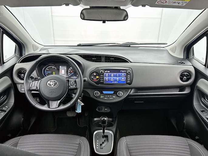 Met zijn dynamische eigenschappen belooft deze Toyota Yaris jou een heleboel rijplezier. Hij is ontwikkeld op een geavanceerd onderstel en biedt altijd een veilig weggedrag. De pluspunten van rijden op benzine en rijden op elektriciteit zijn soms lastig te vergelijken. Dus komt de hybride motor van deze Toyota Yaris mooi uit. De perfecte combi! Het glazen panoramadak zorgt voor een onovertroffen uitzicht. Ook 16 inch lichtmetalen velgen, LED-dagrijverlichting, dakspoiler, in hoogte verstelbare passagiersstoel, donker getint glas achter en LED-achterlichten horen tot de voorzieningen op deze auto.