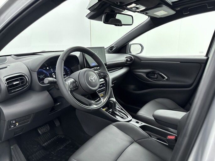 Het eigentijdse ontwerp en de toonaangevende techniek maken van iedere Japanse auto een kwaliteitsproduct. Dat is ook te merken aan deze Toyota Yaris. Dit is een nieuwe auto, hij is nu direct leverbaar. Deze Toyota Yaris is voorzien van een hybride motor en gebruikt dus zowel brandstof als elektriciteit. Dat betekent zuinige kilometers en toch maximale prestaties. Last van de vorst? Door de stoelverwarming zit je in ieder geval vorstelijk! Het glazen panoramadak bied jou een breed zicht op de omgeving. Natuurlijk kan je zonder. Maar waarom? Lekker toch, zo'n verwarmd stuurwiel? Tot de uitrusting behoren ook 18 inch lichtmetalen velgen, LED koplampen, sportonderstel, geluidsisolerende ramen, sportinterieur en dakspoiler.
