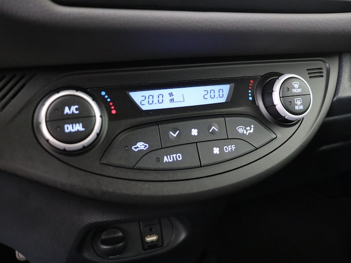 Zoals je mag verwachten van deze Toyota Yaris is hij uitgerust met een reeks aan actieve veiligheidssystemen. Dat de auto steeds meer taken van de bestuurder overneemt, merk je bijvoorbeeld aan het systeem voor verkeersbord-detectie in deze auto. Het Lane-keeping systeem garandeert dat je je niet onverhoeds buiten de lijnen van de rijstrook begeeft. Het forward collision warning-systeem berekent via een sensor de afstand tot het verkeer vóór u en komt in actie als er gevaar bestaat van een botsing. De veiligheid van deze auto wordt verder verhoogd door hill hold functie, brake assist en bandenspanningcontrolesysteem.