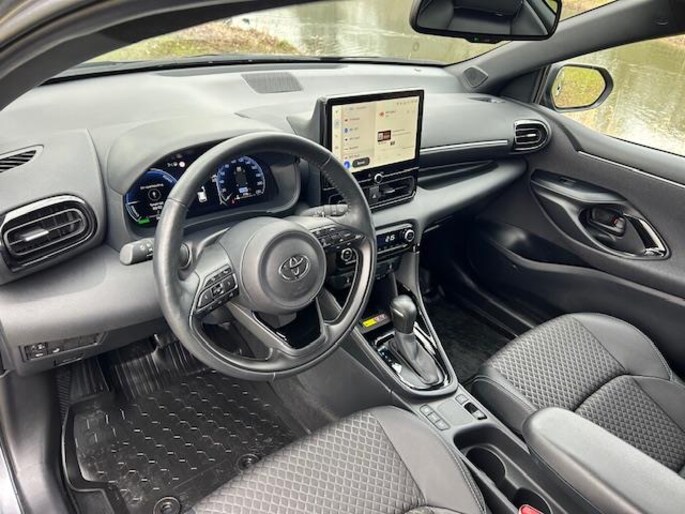 Met zijn geweldige prestaties en dynamische uiterlijk laat deze sportieve eyecatcher het hart van veel autoliefhebbers sneller kloppen. We hebben het hier over een Toyota Yaris. De aandrijving van deze Toyota wordt verzorgd door een driecilinder motor en een automatische transmissie. Bestuurder en bijrijder krijgen een warm welkom: deze Toyota Yaris is voorzien van verwarmbare voorstoelen. De sportstoelen zien er niet alleen prachtig uit, maar zijn ook functioneel, zoals u kilometer na kilometer zult merken. Nooit meer koude handen of koude vingers in de auto. Stuurverwarming zorgt ervoor dat het stuur behaaglijk warm aanvoelt. Tot de voorzieningen van deze auto behoren 17 inch lichtmetalen velgen, LED koplampen, geluidsisolerende ramen, dakspoiler, in delen neerklapbare achterbank en LED-achterlichten.