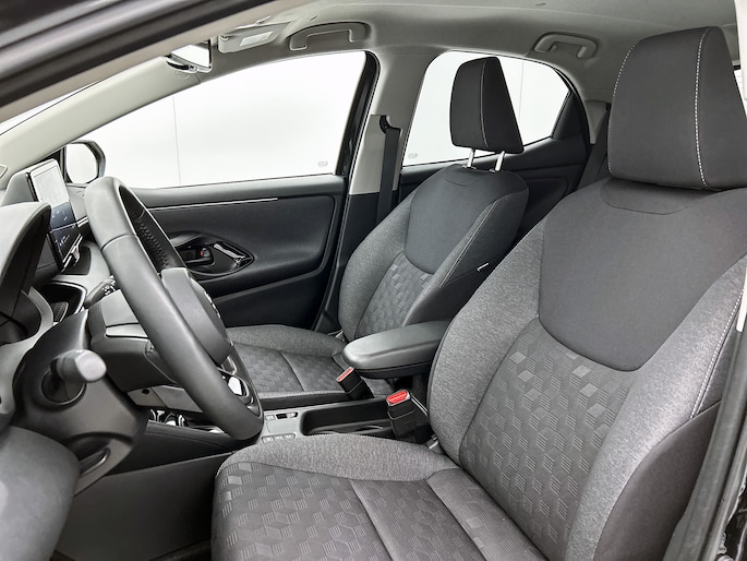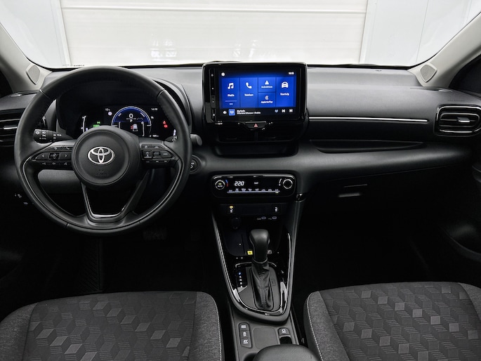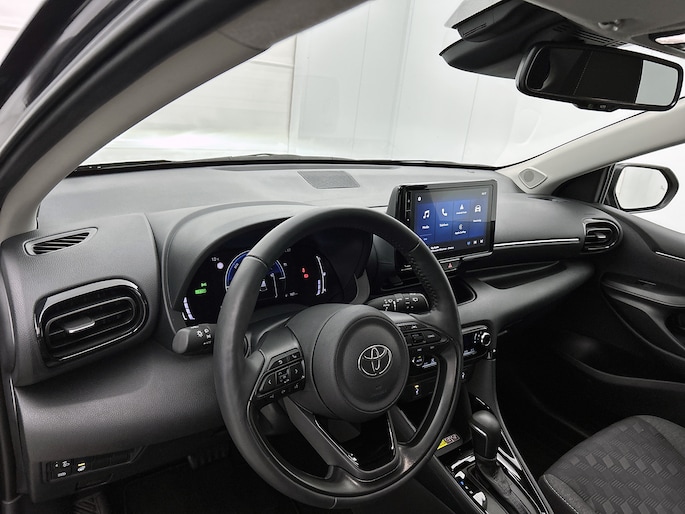 Het digitale dashboard is qua lay-out en zichtbaarheid superslim ingedeeld. Alle functies in één keer in beeld! Kommaar-kommaar-kommaar, aldus de achteruitrijcamera. Iedere centimeter vrije ruimte komt haarscherp in beeld. Schadevrij inparkeren maar! Met adaptive cruise control houdt de auto zelfstandig afstand tot jouw voorligger. Een veiligheidsverhogende optie waarmee je comfortabel onderweg bent. Deze Toyota Yaris is 'connected'. Belangrijke functies worden permanent gemeten en zijn uit te lezen via een speciale app, ook op afstand. Laat je onderweg niet afleiden, de bediening van het audio-installatiesysteem en ook het full map navigatiesysteem gaat met knoppen op het stuur. Natuurlijk is de audio-installatie voorzien van DAB-ontvangst. Met automatische airconditioning, draadloos opladen, regensensor, keyless entry, buitentemperatuurmeter en automatisch dimmende binnenspiegel is deze auto helemaal compleet.