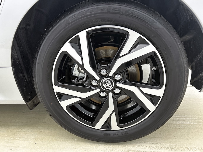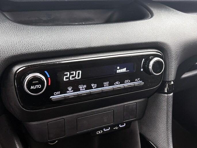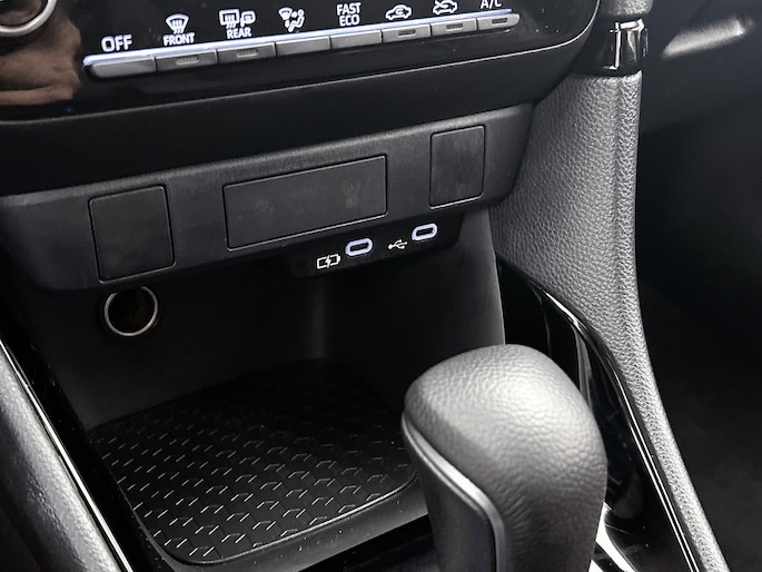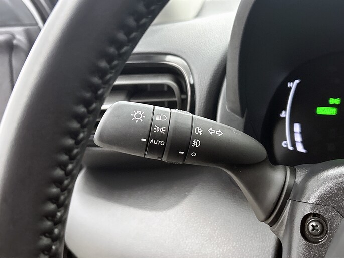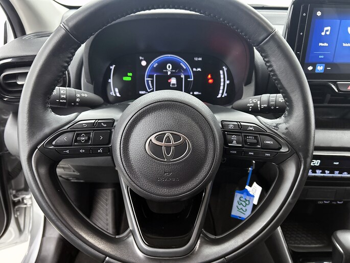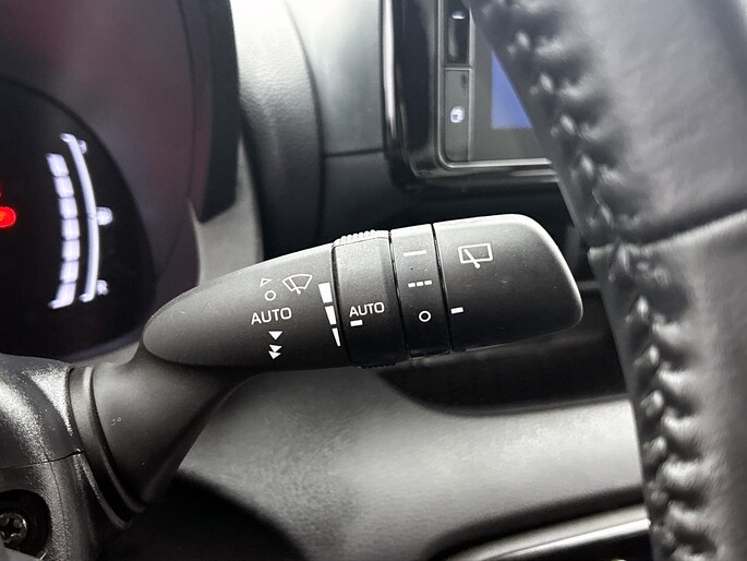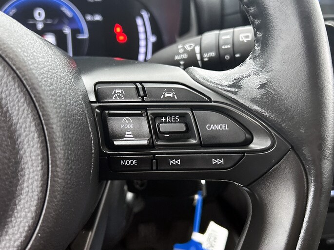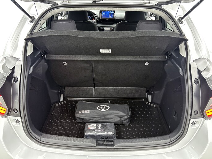 Natuurlijk brengt het digitale dashboard alle ritinformatie perfect in beeld. Maar ook communicatie, navigatie en tal van andere functies zijn permanent te volgen. Achteruitrijden en inparkeren worden een eitje dankzij de achteruitrijcamera. Adaptive cruise control is een comfortabele en veilige optie. Het systeem reguleert de snelheid en houdt automatisch afstand tot jouw voorligger. De jeugd is niet los te maken van hun smartphone, en dat zie je ook aan deze jonge auto. Via een speciale app sta je overal en altijd in contact met je vierwieler. Superhandig! Kies de muziek waarvan jij houdt, dankzij de DAB-radio klinkt het altijd geweldig. Intussen bedien je het audio-installatiesysteem en het full map navigatiesysteem met de knoppen op het stuur. Deze Toyota is voorzien van automatische airconditioning, regensensor, keyless entry, buitentemperatuurmeter, automatisch dimmende binnenspiegel en lederen stuur.