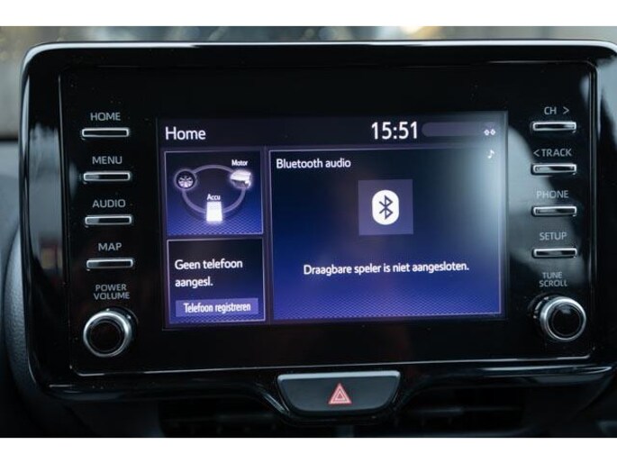 Great economical driving in a very beautiful and sporty Toyota Yaris Business Plus with 116HP in stylish Anthracite gray metallic with a fine automatic transmission! Who wouldn't want that? This hybrid Toyota Yaris guarantees quality, driving comfort and very low fuel consumption. On average, the fuel consumption of this Toyota Yaris with luxury options is 1-24KM with Environmental label A. In addition, this hybrid from the first owner is equipped with bluetooth for calls and audio, Apple Carplay or Android car for navigation and music, rearview camera and climate control. Safety options have also been considered with collision recognition, adaptive cruise control and lane sensors. Are you curious about this 5-door Hybrid Yaris? Feel free to contact us to make an appointment in our showroom in Houten near Utrecht. That's in the middle of the Netherlands so always close by! Standard 12 months Bovag warranty included in the price. Trade-in and financing possible.