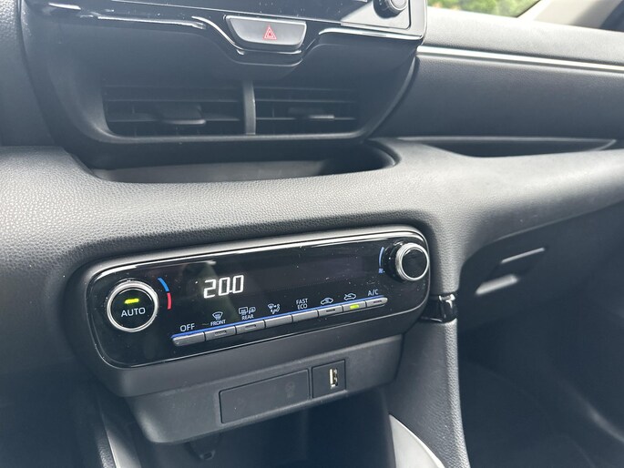 Zoals u mag verwachten van deze Toyota Yaris is hij uitgerust met een reeks aan actieve veiligheidssystemen. Verkeersbord-detectie herkent verkeersborden en toont deze op het instrumentarium van de auto. Deze Toyota Yaris is ook behulpzaam als het gaat om een rechte koers. Het Lane-keeping systeem signaleert en corrigeert als u onbedoeld de rijstrooklijnen dreigt te overschrijden. In deze Toyota vinden we verder een hill hold functie, frontale botsbescherming en bandenspanningcontrolesysteem.