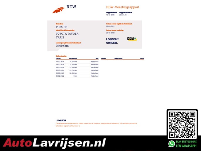 Kilometerstand gecontroleerd