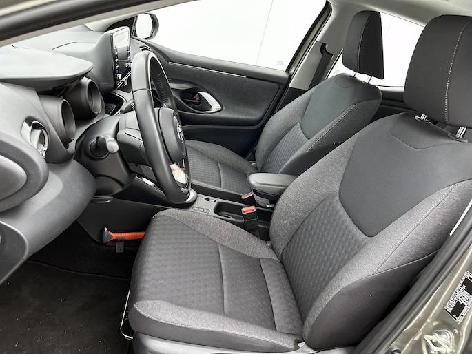 Zoals je mag verwachten van deze Toyota Yaris is hij uitgerust met een reeks aan actieve veiligheidssystemen. Verkeersbord-detectie herkent verkeersborden en toont deze op het instrumentarium van de auto. Het Lane-keeping systeem is altijd alert. Over de rijstrooklijntjes gaan is er niet bij. Forward collision warning is een automatisch waarschuwingssysteem dat direct in werking treedt bij gevaar voor een kop-staartbotsing. De veiligheid van deze auto wordt verder verhoogd door hill hold functie, autonoom remsysteem en bandenspanningcontrolesysteem.