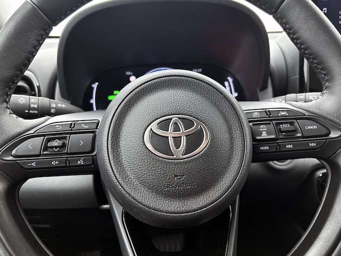 Het digitale dashboard stelt jou in staat jouw cockpitinterface te personaliseren. Met de achteruitrijcamera zie jij precies wat er achter de auto gebeurt. Adaptive cruise control is een comfortabele en veilige optie. Het systeem reguleert de snelheid en houdt automatisch afstand tot jouw voorligger. Zoals je van zo'n jonge auto mag verwachten, zijn hier ook de geavanceerde remote services aanwezig. Simpelweg met een app op uw smartphone controleer je op afstand de status van de auto en bedien je diverse functies. In deze auto beschik jij natuurlijk over een full map navigatiesysteem. Het audio-installatiesysteem met DAB-radio biedt glasheldere geluidskwaliteit. Je bedient dit veilig via het stuurwiel. De Toyota is standaard voorzien van: automatische airconditioning, draadloos opladen, regensensor, keyless entry, buitentemperatuurmeter en automatisch dimmende binnenspiegel.