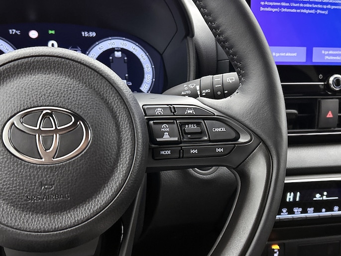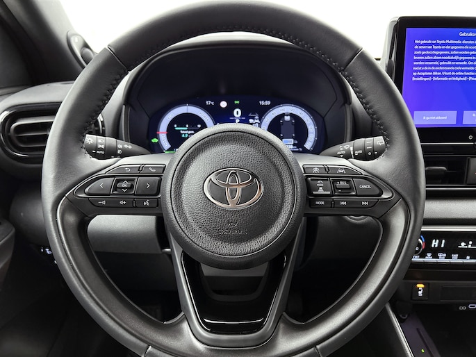 Kinderfietsje niet gezien bij het inparkeren? Dat gebeurt je nooit meer. Daar zorgt de achteruitrijcamera wel voor! Adaptive cruise control is veilig en comfortabel. De snelheidsregelaar houdt automatisch afstand tot het voertuig dat voor je rijdt. Deze Toyota Yaris is voorzien van remote services. Via je smartphone bedien je diverse functies ook op afstand en krijgt je informatie over de status van je auto. De hoorbare sensatie van het high performance audiosysteem is een ervaring op zich. Kabels niet nodig, de draadloze telefoonlader laadt je smartphone al rijdend bij. Extra opties op deze auto zijn: full map navigatiesysteem, kruisend verkeer detectie, electronic climate control, DAB ontvangst, regensensor en keyless entry.